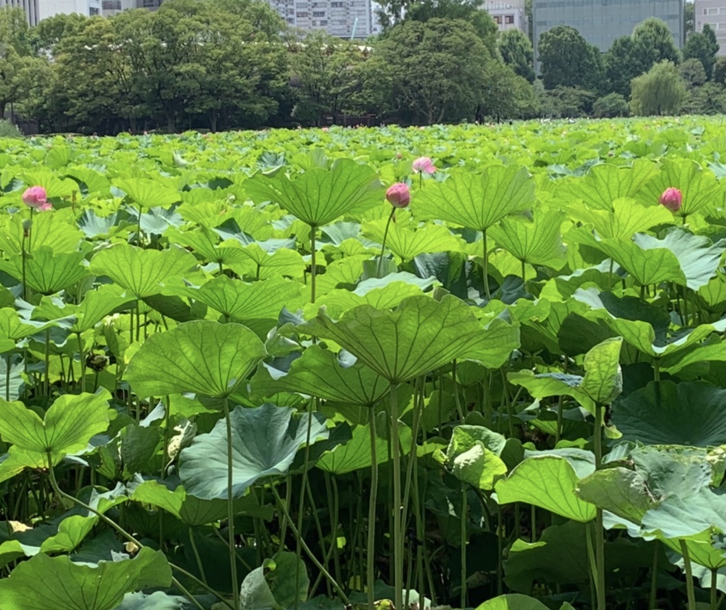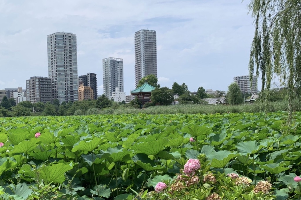 バス停・不忍池・植物