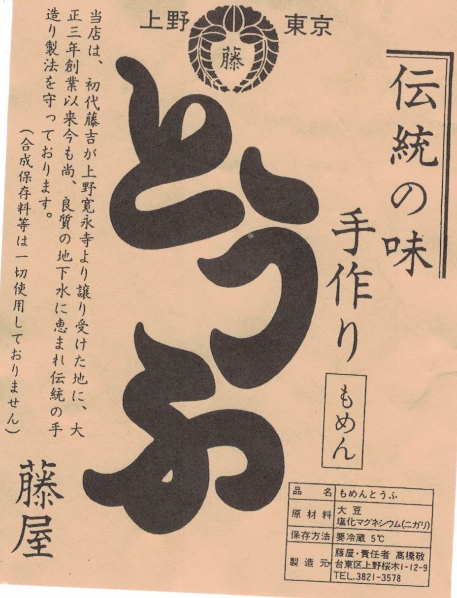 そこで扱っているとうふは、上野桜木の藤屋さんの手作りとうふでした。