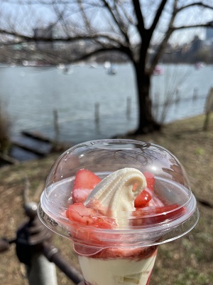 ミニストップ上野池之端店で買ったとよのか練乳いちごパフェです。